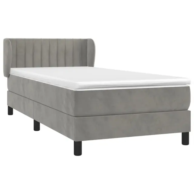 Box spring postelja - Vzmetna postelja z vzmetnico svetlo siva 90x200 cm žamet SL1564
