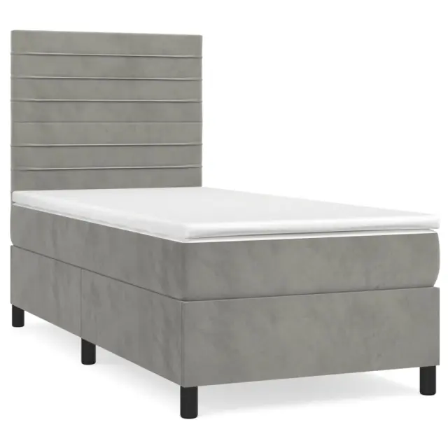 Box spring postelja - Vzmetna postelja z vzmetnico svetlo siva 80x200 cm žamet SL643