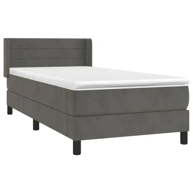 Box spring postelja - Vzmetna postelja z vzmetnico temno siv 90x190 cm žamet SL1591