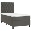 Uporabite to box spring posteljo za uživanje v mirnem spancu! Ponuja maksimalno sprostitev in prijeten spanec. Mehak žamet: Žamet je mehka in razkošna tkanina, ki jo prepoznamo po gostem kupu enakomerno rezanih gladkih vlaken. Žametna tkanina ima značilen mehak občutek, zaradi česar je prijetna na dotik.Praktično vzglavje: Vzglavje postelje je nastavljivo po višini po vaših željah. To vzglavje za posteljo vam zagotavlja odlično oporo za hrbet, ko sedite na postelji in berete ali gledate filme.Ležišče z žepkastimi vzmetmi: Vgrajena individualna žepkasta vzmet je znana po zelo visoki kakovosti, hkrati pa zagotavlja visoko stopnjo vzdržljivosti in prilagodljivosti. Lahko učinkovito absorbira hrup in udarce, ki jih povzročata metanje in obračanje.Srednje trda opora: Posteljna vzmetnica odlično zagotavlja dodatno stabilnost in ravno pravšnjo stopnjo čvrstosti, ne da bi pri tem žrtvovala udobje. Zato je idealna za tiste, ki spijo na hrbtu ali trebuhu.Koži prijazen nadvložek: Zaščita za ležišče ima trpežno in koži prijazno tkanino, zaradi česar je mehka in udobna. Opomba:Zaradi higienskih razlogov vzmetnice ni mogoče vrniti po odstranitvi ali odprtju embalaže.Vsakemu izdelku je priložen priročnik za enostavno sestavljanje.Postelja:Barva: Temno sivaMaterial: Žamet (100 % poliester), vezan les, konstruiran lesDimenzije: 203 x 80 x 118/128 cm (D x Š x V)Vzmetnica za posteljo:Barva: Bela in temno sivaMaterial: Žamet (100 % poliester)Material polnila: Žepkaste vzmeti, penaDimenzije: 80 x 200 x 20 cm (Š x D x V)Nadvložek:Barva: BelaMaterial nadvložka: Blago (100 % poliester)Material polnila: PenaDimenzije: 80 x 200 x 5 cm (Š x D x V)Paket vsebuje:1 x Posteljni okvir1 x Vzglavje1 x Vzmetnica1 x Nadvložek