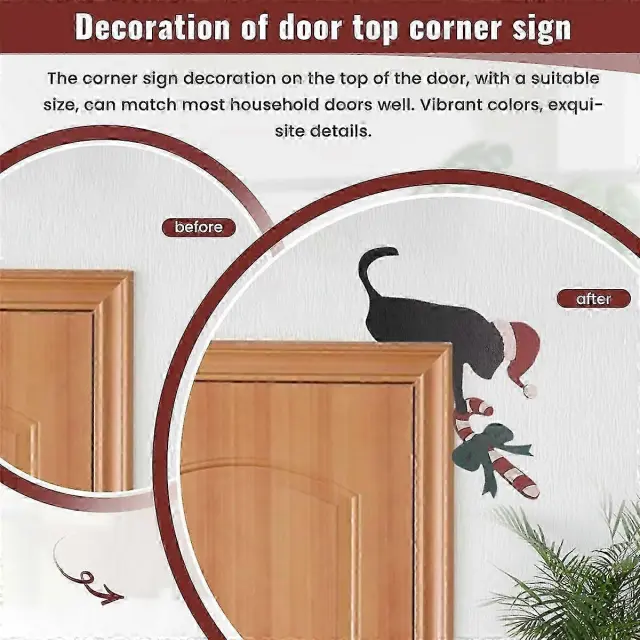 Božič Vrata Kotni Znak Lesena Mačka Vrata Topper Dekor, Leseni Okvir Vrat Ornament Mačka Kip Umetniška Figurica Za Steno
