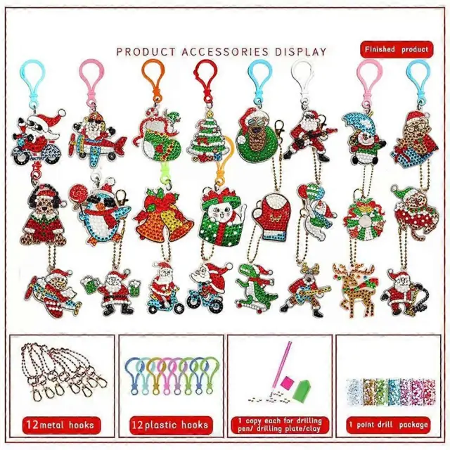 Božič Xmas Odštevalni koledar Adventni koledar 24 kosov DIY Diamantna slika Obeski za ključe Kompleti presenečenja Slepa škatla Praznična daril