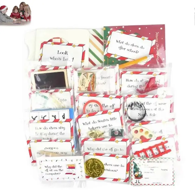 Božična 24-dnevna darilna odštevalna škatla 24 Days of Christmas Elf Čarobni komplet igrač za dom, miza, hiša, kuhinjski dekor