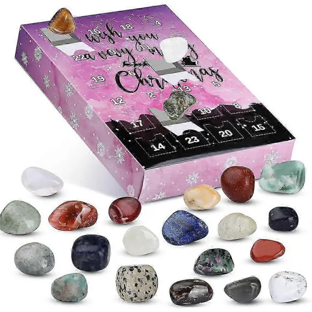 Božična darila, 24-dnevna slepa škatla, adventni koledar, odštevalnik, 24 kosov naravnega kristalnega kamna