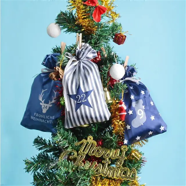Božična dekoracija 2025 Adventni koledar 24 kosov darilnih vrečk Kerst Decoratie DIY papirnate nalepke leseni okras božični navidad