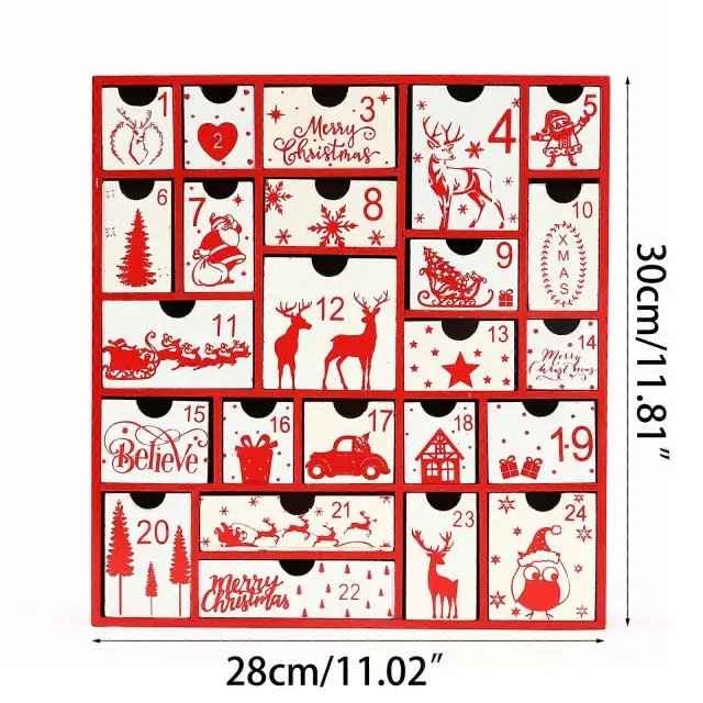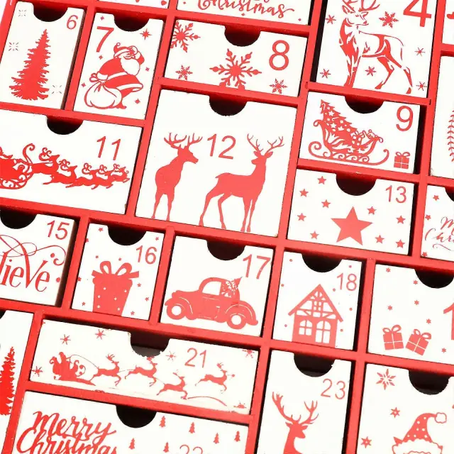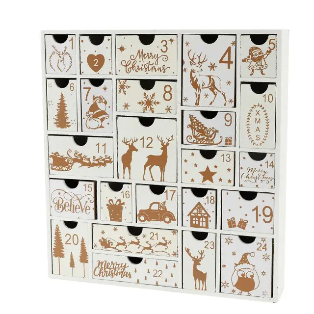 Božična hiša, leseni adventni koledar, 24-dnevni odštevalnik, predali v omari, novo leto 2022, božično darilo, bela