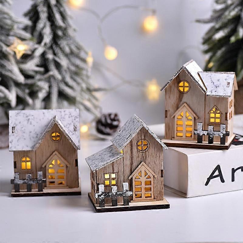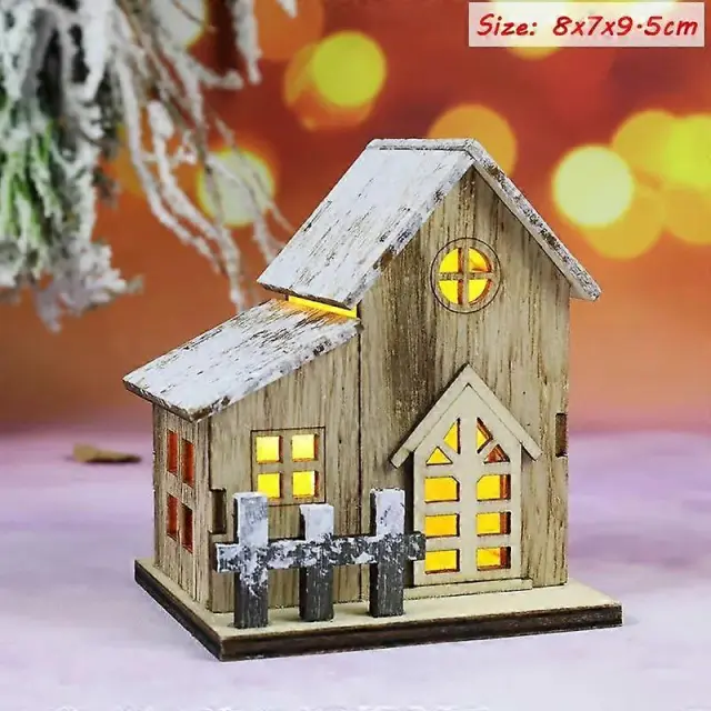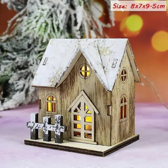 Božična LED lučka Lesena hiša Svetleča kabina Vesel božič Okraski za dom DIY Okraski za božično drevo Otroško darilo za novo leto