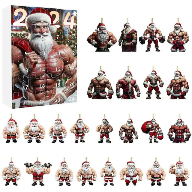 Božična škatla za adventne žaluzije Muscle Santa Claus Mini akrilni komplet božičnih obeskov za božične žaluzije