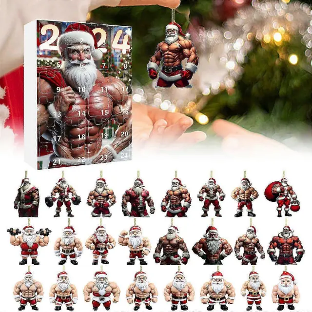 Božična škatla za adventne žaluzije Muscle Santa Claus Mini akrilni komplet božičnih obeskov za božične žaluzije