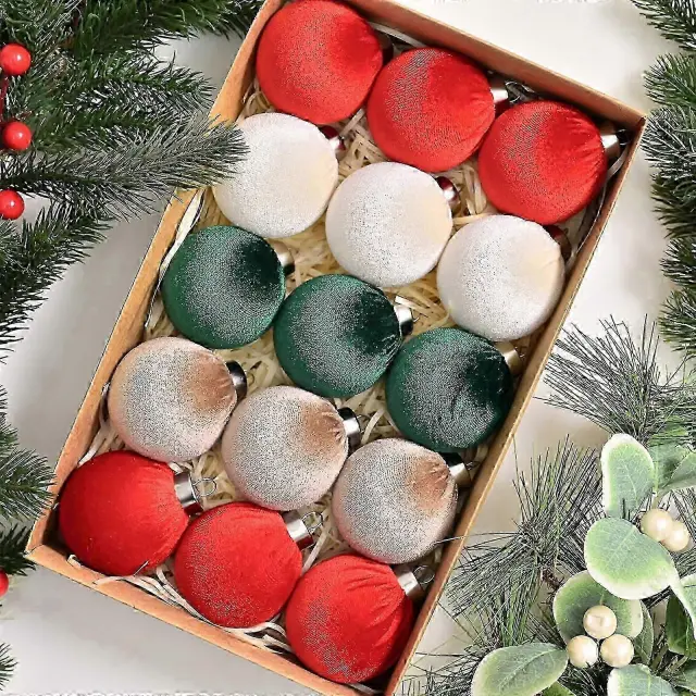 Božična žametna 6 cm božična krogla Izjemna vrhunska svilena žametna božična okrasna krogla, božični obesek, 15 kosov