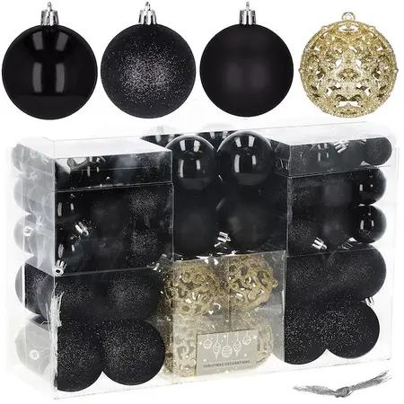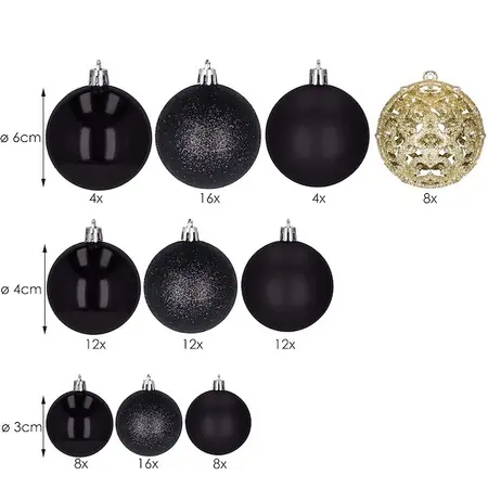 Božične bombice 100 enot. Komplet božičnih okraskov 6/4/3 cm v črni barvi.