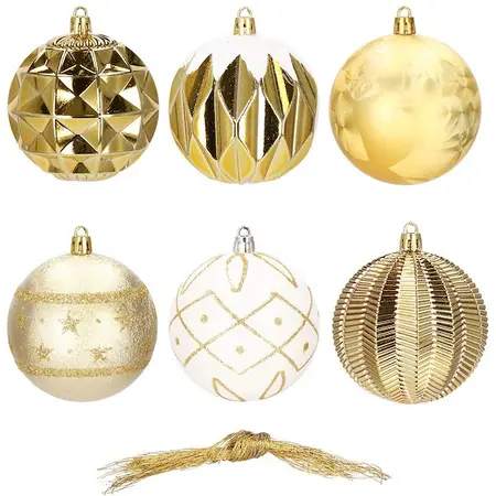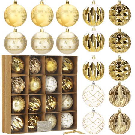 Božične kroglice v kompletu 16 kosov v zlato-beli barvi bodo vašemu drevescu dale edinstven čar. Čudovito okrašene krogle v 6 različnih oblikah se čudovito svetijo podnevi in ponoči odsevajoč svetlobo drevesnih lučk. Izdelane so iz varnega in odpornega materiala, tako da lahko pri dekoraciji sodelujejo tudi otroci. Brezplačne vezalke omogočajo enostavno pritrditev na želeno mesto. Idealen set za okrasitev jelke, dopolnitev obeskov in okrasitev daril. Parametri: Blagovna znamka: Springos Barva: zlato-bela Material: plastika Količina: 16 kroglic Dizajni: 6 različnih dizajnov Prednosti: trpežne, BREZPLAČNE vrvice za obešanje Komplet vsebuje naslednje kroglice: 2x bela mat krogla z bleščečim dizajnom - 8 cm 4x zlata krogla svetleča krogla z reliefom in bleščečim okrasom - 8 cm 3x zlata mat krogla - 8 cm 3x geometrijska zlata svetleča krogla - 8 cm 2x zlato-bela svetleča krogla z izbokline - 8 cm 2x zlata mat krogla z bleščicami v obliki zvezde - 8 cm Koda izdelka: CA0870