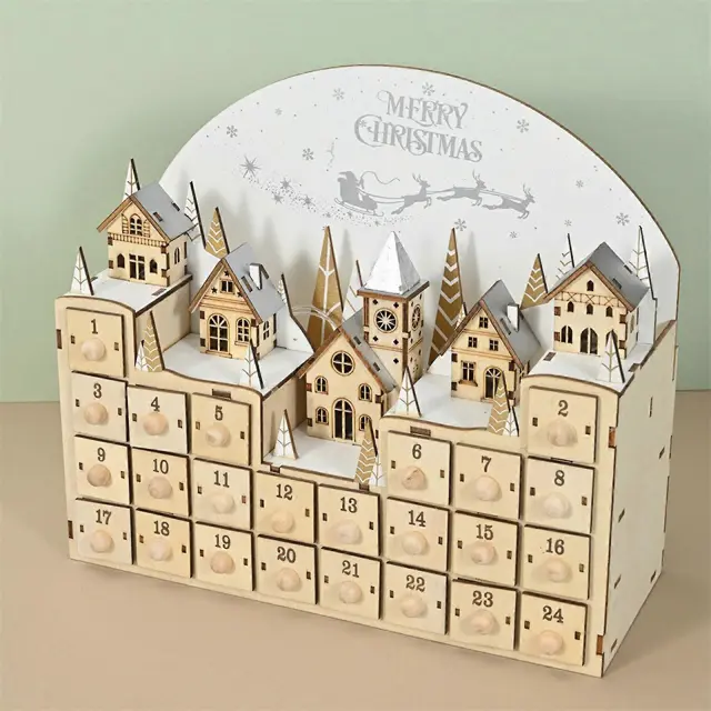 Božične hiške Adventni koledar Eleganten leseni koledar z LED osvetljenimi odštevalniki do božiča s 24 predali za darila