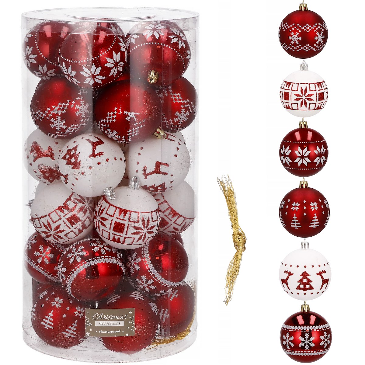 BOŽIČNE KROGE ZA BOŽIČNO DREVO 30 kos SET 7 cm PREMIUM nezlomljivi VZORCI