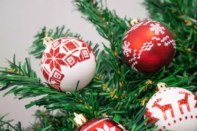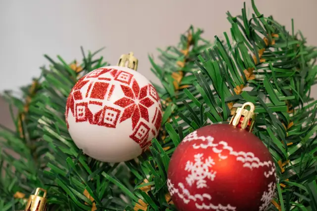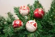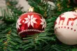 Božične kroglice, PRL, plastične, varne za božična drevesca, bele in rdeče, komplet