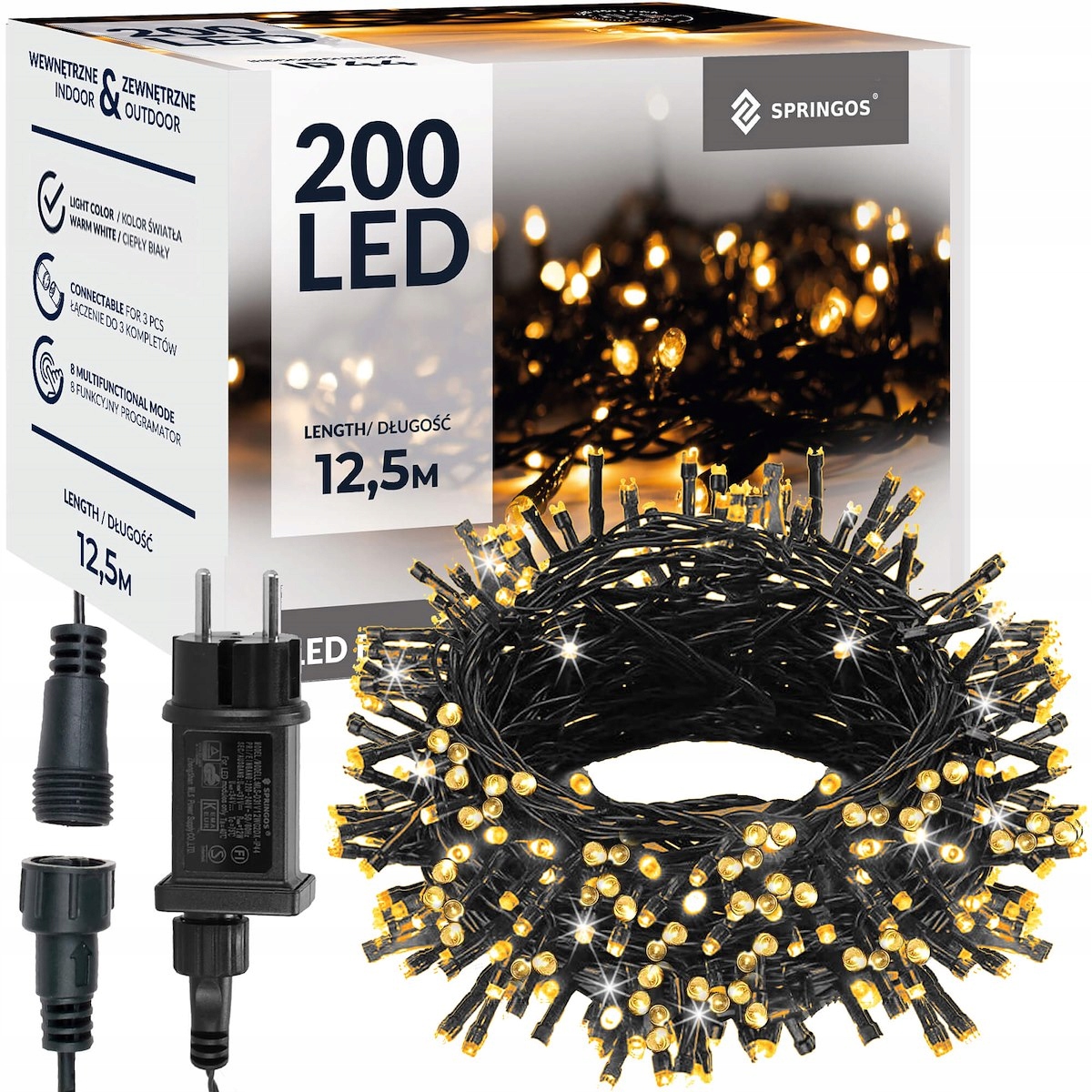 LUČKE ZA JELKO 200 LED 200 LED TOPLA BELA + MOŽNOST KOMBINIRANJA + NAČINI SVETLOBE + CE, RoHS CERTIFIKAT + SPOMINSKA FUNKCIJA Blagovna znamka: Springos® LED barva: toplo bela Število LED: 200 LED 8-funkcijski programator Spominska funkcija Skupna dolžina: 12,5 m Dolžina delov z LED: 10 m Barva vtiči in izolacija: črni vtič, zelena izolacija Napajanje: električno omrežje Certifikati: CE, RoHS Uporaba: zunanja / notranja Dodatne informacije: varčne LED diode, možno jih je povezati Šifra izdelka: CL4075 ⭐ OBČUTITE ČAROVNIJO LUČ ⭐ Božični čas je otvoritveni čas po vsem svetu, pogosto z velikim pompom, uradno osvetlitvijo starih mest, zgradb, mostov in ogromnih Božična drevesca z milijoni lučk različnih barv in oblik. Vse več ljudi se odloča za obisk t.i vrtovi in svetlobni festivali. Podarite sebi in svojim najdražjim kanček božične čarovnije in naj vaš dom zasije kot še nikoli! ???? NAJBOLJŠE SVETILKE NA VOLJO ???? ???? PREVERJENA ZNAMKA - kupujete pri vodilni znamki okraskov, božičnih drevesc in razsvetljave ???? VARČEVANJE Z ENERGIJO - LED osvetlitev je najboljša možna možnost, če želite zmanjšati porabo energije in znižati stroške ???? CERTIFICIRAN IN VAREN NAPAJALNIK - izognili se boste opeklinam in nevarnosti električnega udara ???? NAJBOLJŠE ZA ZUNANJE - vodotesne diode, hermetični konektorji, IP44 razred tesnosti ???? MOŽNOST POVEZAVE - zahvaljujoč podaljškom lahko povežete do 3 komplete skupaj in enostavno osvetlite tudi velike predmete ???? IZ PREMIUM MATERIALOV - bakrene žice, z debelo in trpežno izolacijo ???? LIVING COLORS - naj vaša osvetlitev pritegne poglede in poudari značaj okolice ???? VZDRŽLJIVOST ŽE LETA - pregorevanje ene diode ne ugasne ostalih???? CELOLETO - uporabljajo se tudi izven praznične sezone kot subtilna in atmosferska razsvetljava, npr. v paviljonu ali otroški sobi. SPOMINSKA FUNKCIJA - lučke si ob ponovnem vklopu zapomnijo nastavljen svetlobni način ❄️ BOŽIČNA POKRAJINA ❄️ Predstavljajte si temno zimsko popoldne, ko presenetljivo hitro pade tema in ljudje instinktivno začnejo več časa preživljati doma, ob skodelici toplega čaja, knjigo ali svojo najljubšo TV serijo. Čeprav resnično zimska avra postaja vse bolj unikatna kot očitna, lahko tem mrzlim večerom dodate kanček prazničnega, zimskega vzdušja ... Ustvarite svoj, unikaten festival svetlobe, ki bo osvetlil ne le okolico, ampak tudi obrazi mnogih ljudi. ❤️ ☝ VARČUJETE Z ENERGIJO ☝ V dobi dinamičnih sprememb na trgu energentov in nenehnih preobrazb v dobro okolja, ki bi morale biti v srcu vsakega od nas, je treba nakup svetil skrbno premisliti in upoštevati upoštevajo tako porabo energije kot vzdržljivost naprav na električni pogon. Ali ste vedeli, da... ☝ LED diode porabijo mnogokrat manj električne energije ☝ imajo do 25-krat daljšo življenjsko dobo od običajnih žarnic ☝ oddajajo minimalno toploto in se jih lahko dotaknete brez nevarnosti opeklin ☝ LED tehnologija ne zahteva uporaba živega srebra in drugih škodljivih snovi Okolju prijazen odnos in velik prihranek energije! ✅ KUPUJTE ODGOVORNO ✅ ☝ Varnost vedno jemljite resno, še posebej ko gre za električno energijo in z njo povezana tveganja. Svetla Springos® ustrezajo evropskim standardom, kar dokazujeta certifikata CE in RoHS, kot potrditev izpolnjevanja visokih varnostnih standardov. ⭐ HERMETIČNI PRIKLJUČKI ZA USTVARJANJE SETOV ⭐ Zunanje LED svetilke imajo varne in hermetične priključke, ki vam omogočajo, da jih združite v impresivne komplete. Možnost povezovanja nizov lučk za novoletno jelko je izjemno uporabna pri okraševanju hiš, ovijanju okoli ograje ali večjih dreves. Skupaj lahko povežete do 3 komplete LED luči. ⭐️ SVETLOBA PREMIUM CLASS ⭐️ Luči Springos® in svetlobni okraski so sinonim za kakovost – razumemo tako v smislu videza kot skrbnosti, s katero so bili izdelani. Energijska učinkovitost, najboljši materiali, varnost pri uporabi, certifikati in podrobne specifikacije - na vse to lahko računate, ko se opremite z našim izdelkom. PARAMETRI: Specifikacija: Barva: topla bela 8 svetlobnih funkcij Dolžina svetilnega dela: 10 m Dolžina kabla: 2,5 m Razmik med svetlobo: 5 cm Dolžina ledenih ikel: 2,5 cm Svetilke 200 mikro LED Moč: 4,2 W Vhodno napajanje: 31V Izhodni parametri Napajanje: 31V, 12 W Napajanje: omrežje 220-240V / 50/60 Hz Energijsko varčne diode Napajanje z elektriko Gorenje 1 diode ne izklopi kompleta! Vodotesne diode - brez napajanja Svetilke na trpežne bakrene žice premera 1,2 mm, odporne na zlom Certifikat: CE, RoHS Razred tesnosti: IP44 Zunanja in notranja uporaba Možnost priklopa do 3 svetlobnih verig Napajanje diod: 1,8-3,6 V / 20mA Načini se spreminjajo z gumijastim gumbom na vtiču: približno 6 mm zamenljiva širokokotna LED 8 funkcij programatorja: kombinirano zaporedje valov slo-glo utripanje počasna sprememba barve bliskavica stalna svetloba