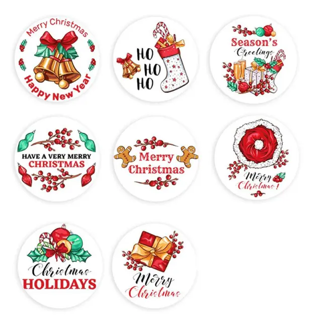 Komplet 500 božičnih nalepk v 8 dizajnih. Te lepe okrogle nalepke so primerne za zavijanje paketov, za okrasitev božičnih voščil in mnogih drugih božičnih obrti.