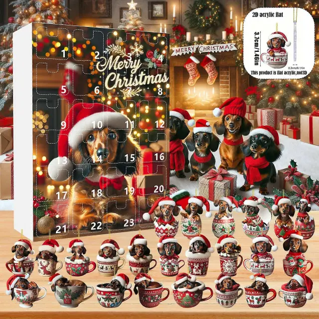 Božični adventni koledar 2024 Božič prihaja škatla za žaluzije klobasa pes skodelica obesek praznično vzdušje dekoracija doma škatla za rolet