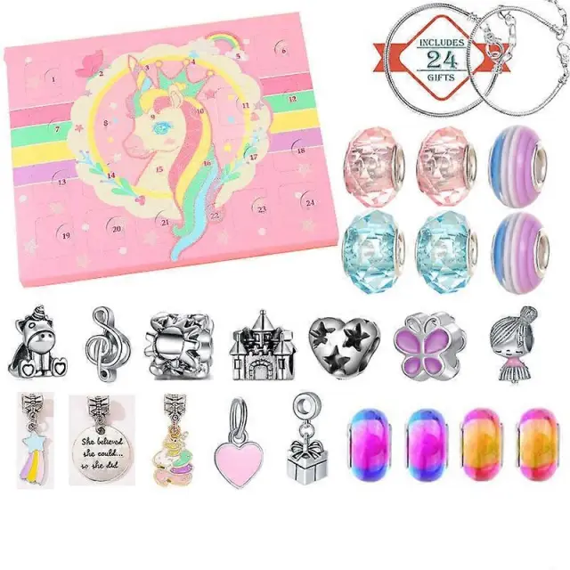 Božični adventni koledar 2024 Modra zapestnica z božično temo za dekleta, 24-dnevni božični odštevalni koledar z naredi sam