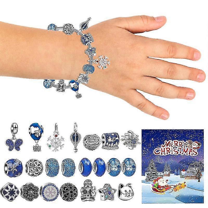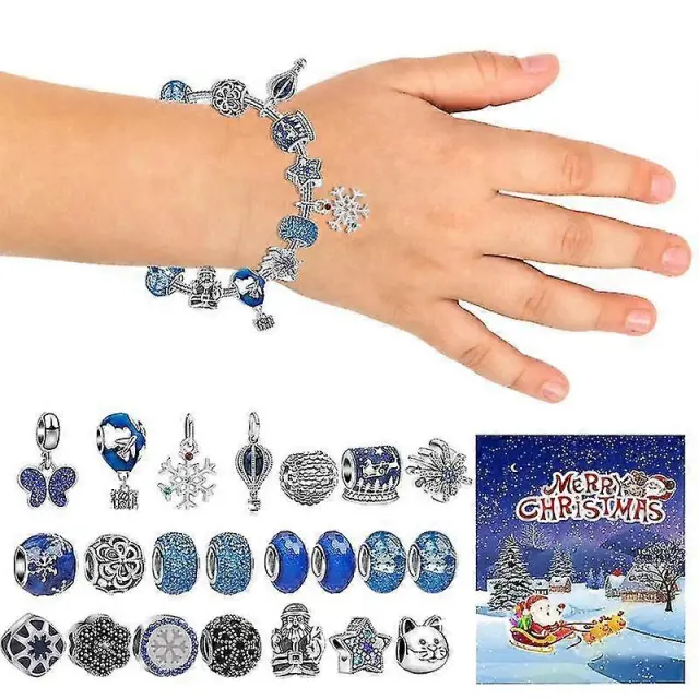 Božični adventni koledar 2024 Modra zapestnica z božično temo za dekleta, 24-dnevni božični odštevalni koledar z naredi sam