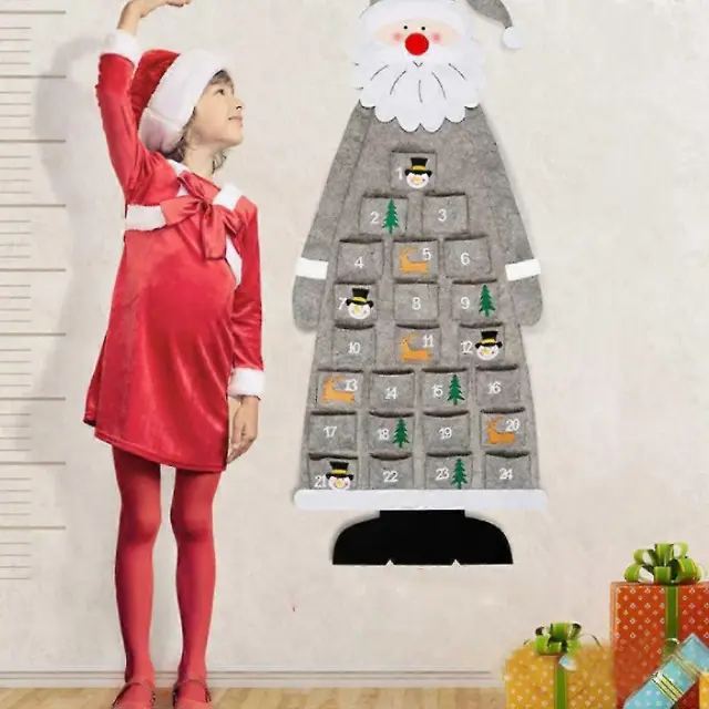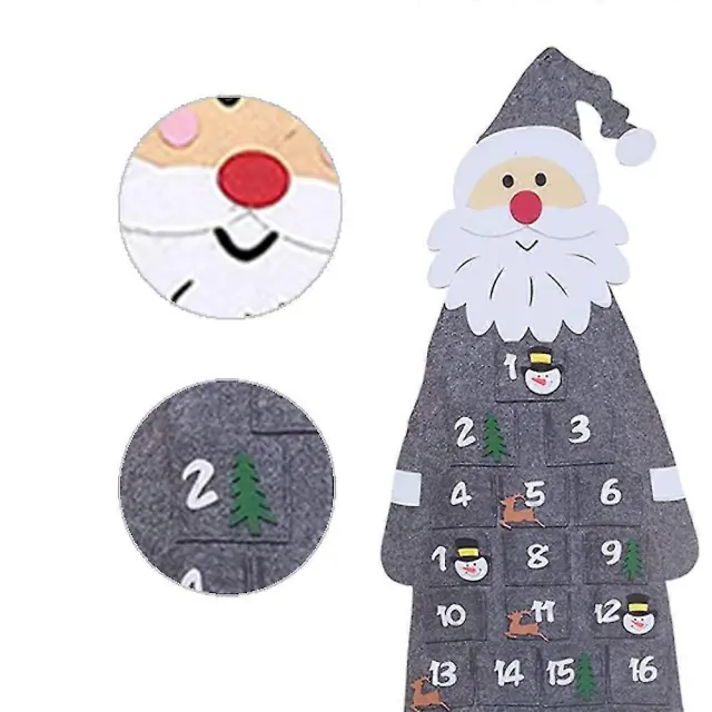 Božični adventni koledar, Božičkov adventni koledar iz klobučevine s 24 žepi, za božično dekoracijo doma in darilo