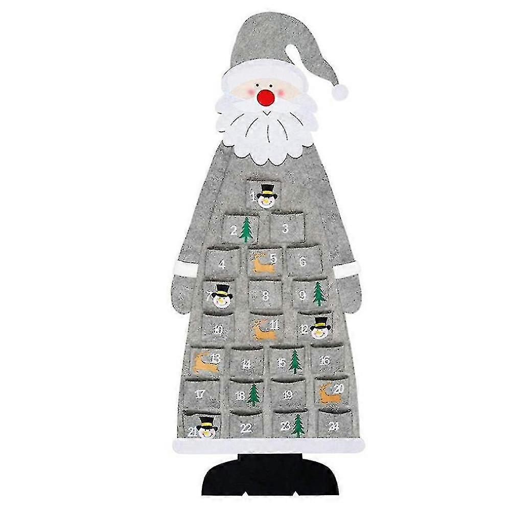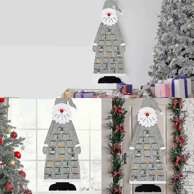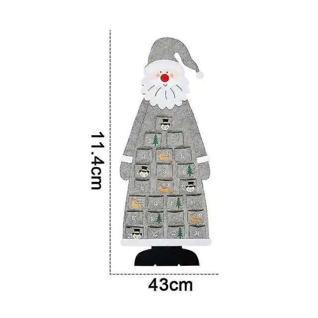 Božični adventni koledar iz filca, stenski Božičkov adventni koledar 24-dnevni božični odštevalni koledar za večkratno uporabo Viseči siv