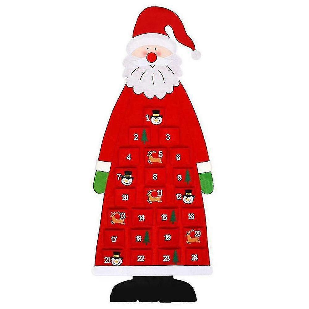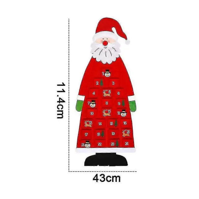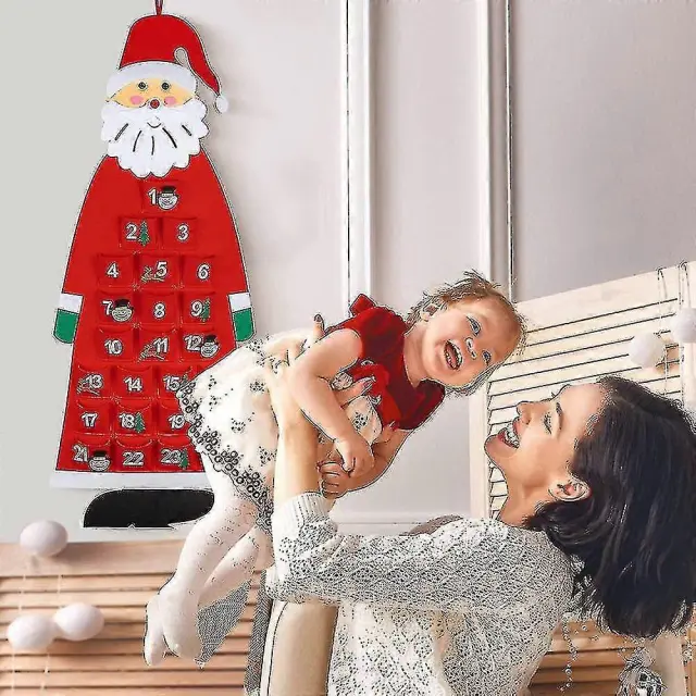 Božični adventni koledar iz filca, stenski Božičkov adventni koledar 24-dnevni božični odštevalni koledar za večkratno uporabo, viseči (rdeč