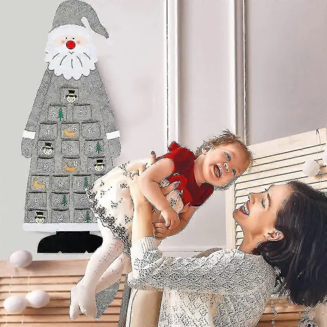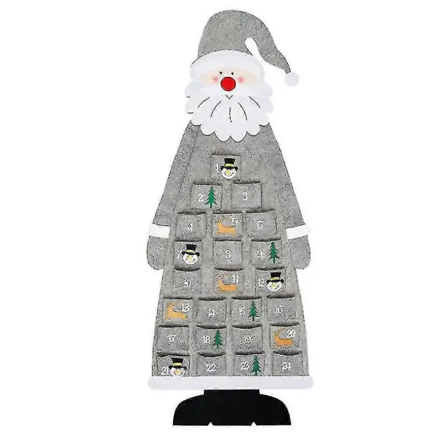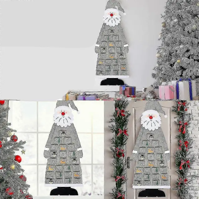 Božični adventni koledar iz filca, stenski Božičkov adventni koledar 24-dnevni božični odštevalni koledar za večkratno uporabo, viseči (siv)