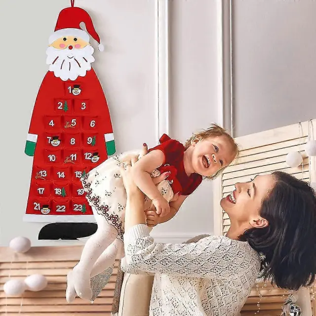 Božični adventni koledar iz filca, stenski Božičkov adventni koledar 24-dnevni božični odštevalni koledar za večkratno uporabo 1 kos