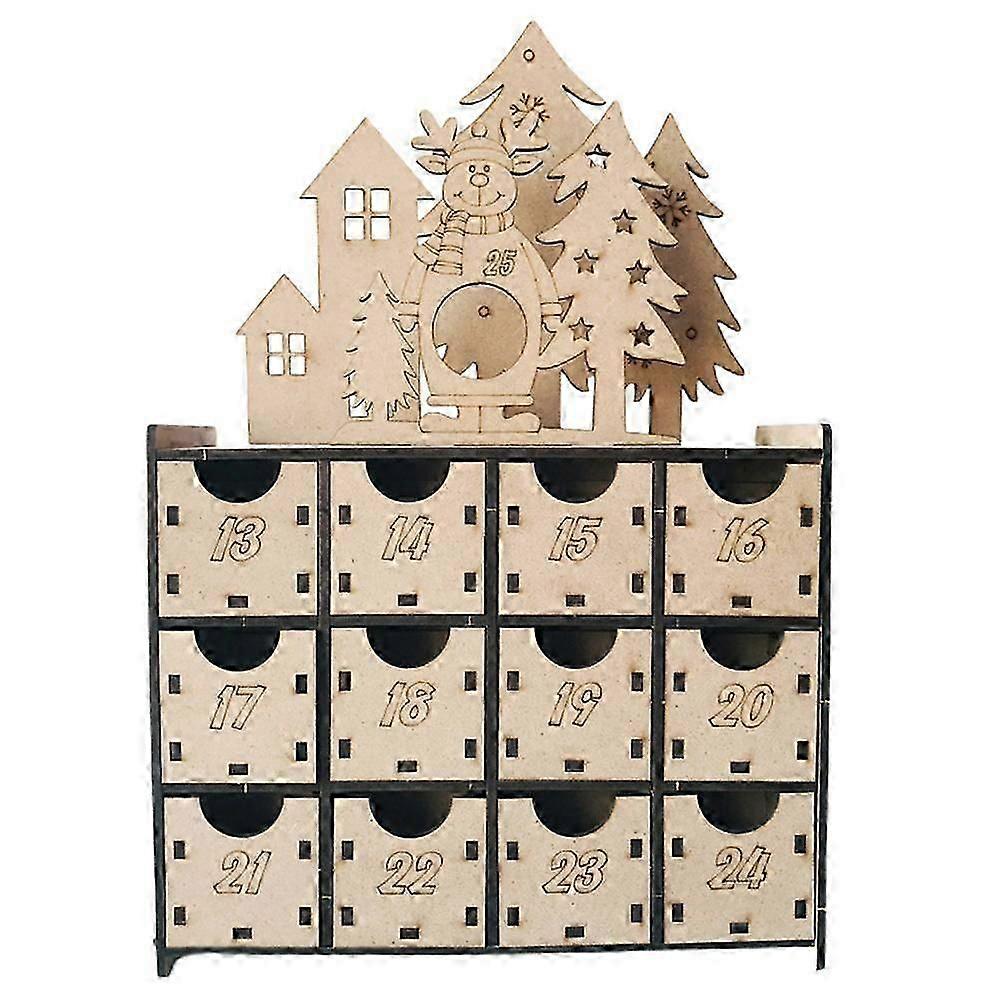 Božični adventni koledar s 25 predali, čokoladno odštevanje do božiča, leseno adventno božično darilo za otroke, ki ga je mogoče ponovno napo