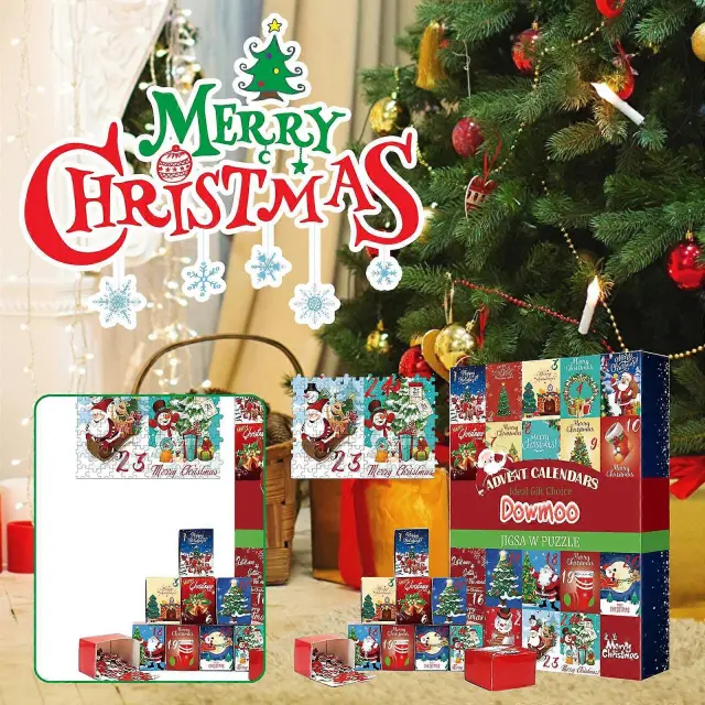 Božični adventni koledar, sestavljanka, 24-dnevno odštevanje, praznična dekoracija, karton za večkratno uporabo