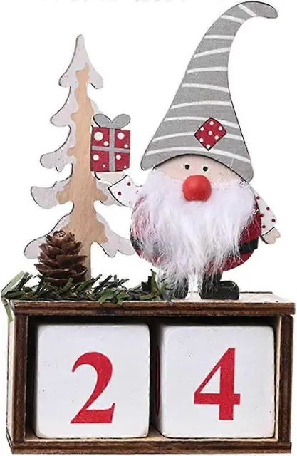 Božični adventni koledar, srčkan vzorec Božička, lesen božični koledar, namizna dekoracija (siva, 1 kos)
