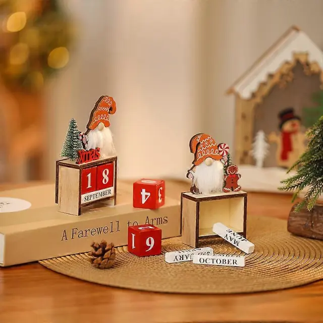 Božični brezlični koledar starca okraski leseni DIY božični odštevalnik koledar Božiček dekoracija