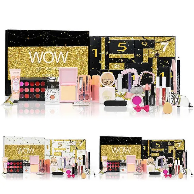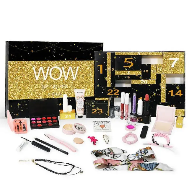 Božični darilni koledar za ličenje 2024, Lepotni adventni koledar, 24 izdelkov za ličenje - črno zlato