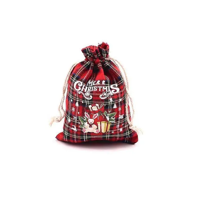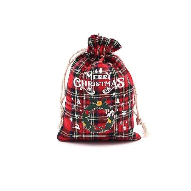Božični karirasti bombažni komplet vrečk za sladkarije z vrvico za adventni koledar