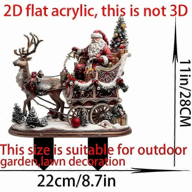 Božični kol, vrtni kol severnega jelena Božička iz akrila, 2D ploščata božična figura, okrasni kol, božična dekoracija