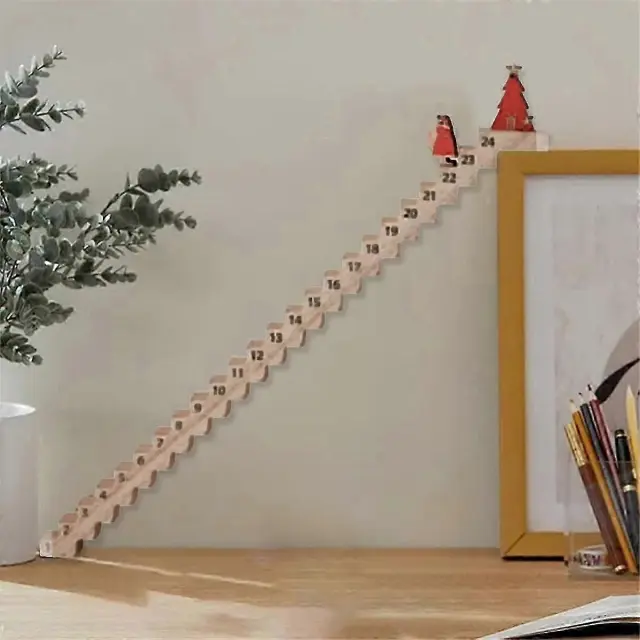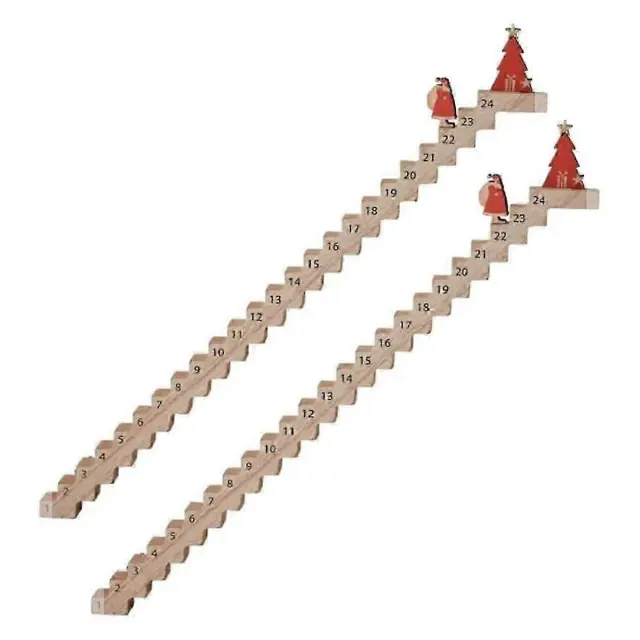 Božični koledar za vzpenjanje po lesenih stopnicah, koledar za odštevanje božičkovega stopnišča, božična dekoracija za odštevanje (2 kos)