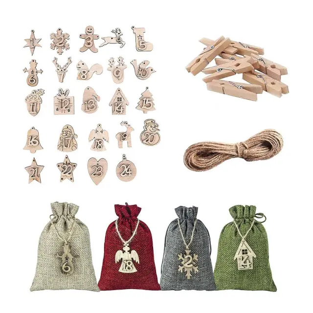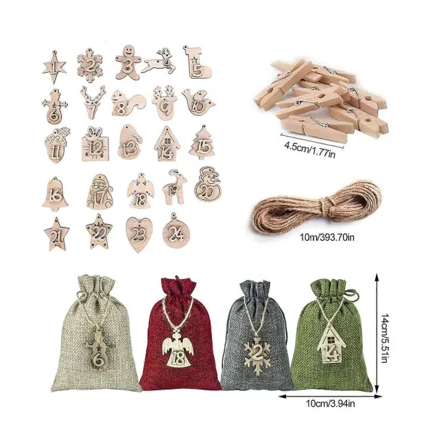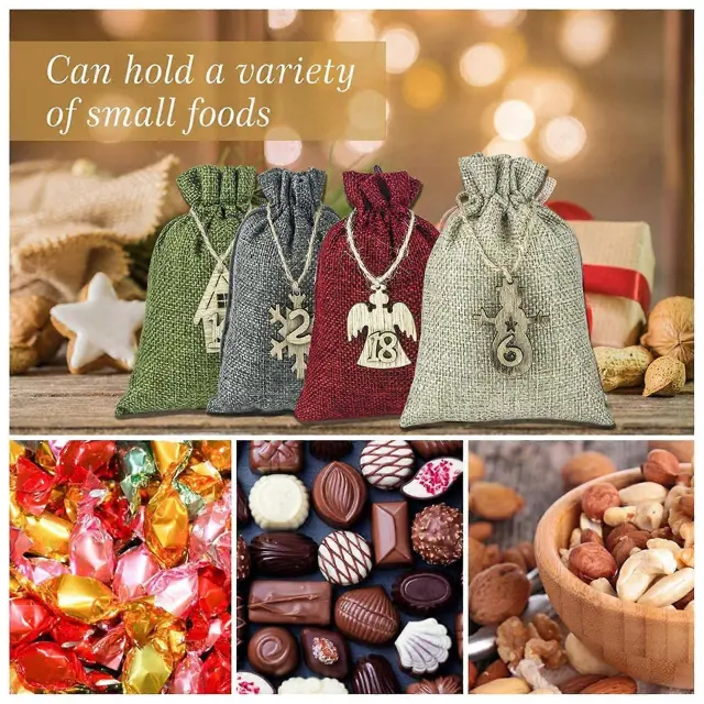 Božični komplet za odštevanje, 24 kosov, vrečka za božični koledar z vrvico, darilo, božična vrečka za sladkarije