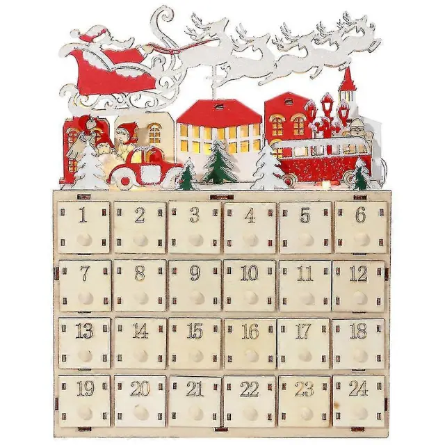Božični led leseni adventni koledar Lesena hiša Božični odštevalni koledar s predali