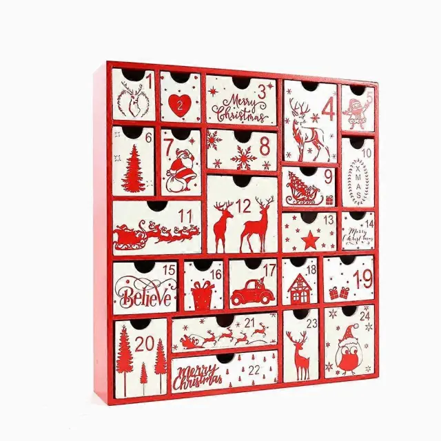 Božični lesen adventni koledar s 24 predali za shranjevanje Odštevalni koledar DIY božična darila za otroke Dropship