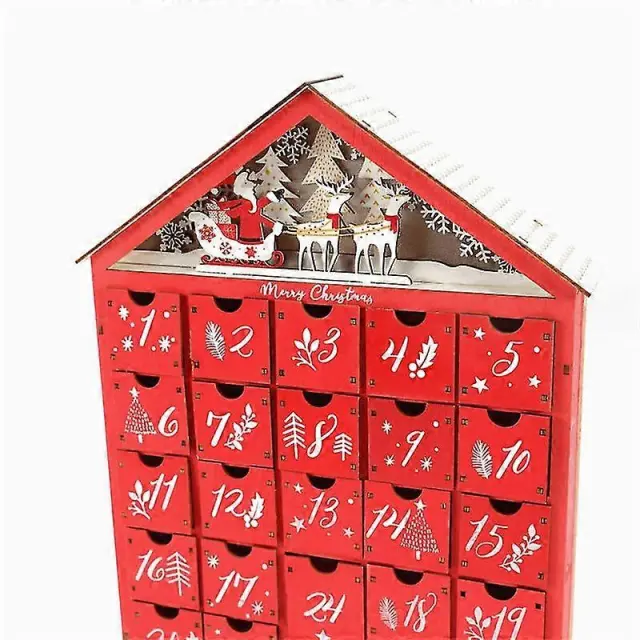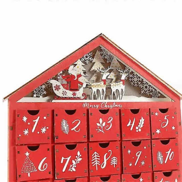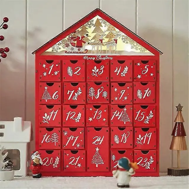 Božični lesen adventni koledar z LED lučko, 24 predali za shranjevanje Božični odštevalni koledar za
