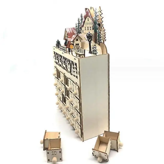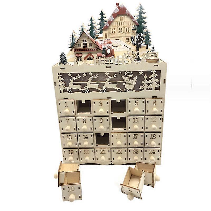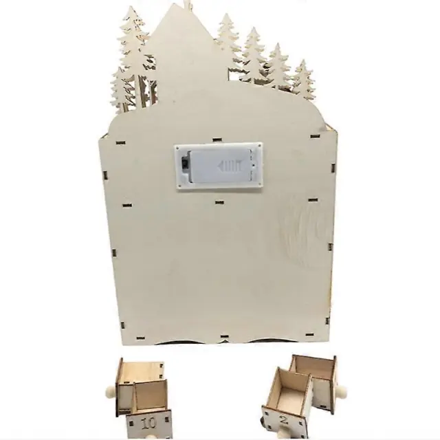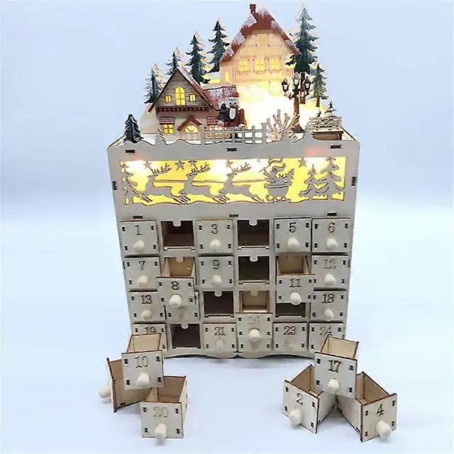 Božični lesen adventni koledar z LED lučko 24 predali za shranjevanje Božični odštevalni koledar za praznično dekoracijo