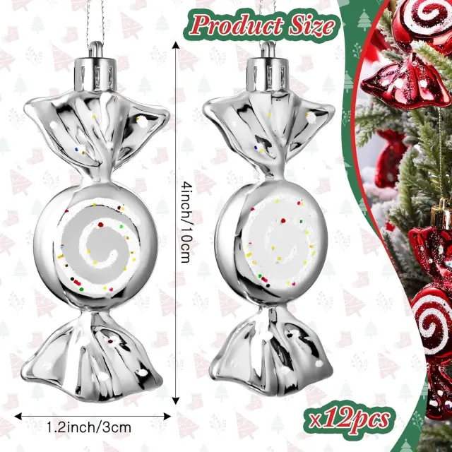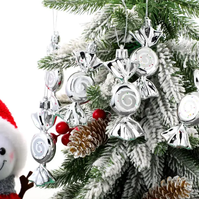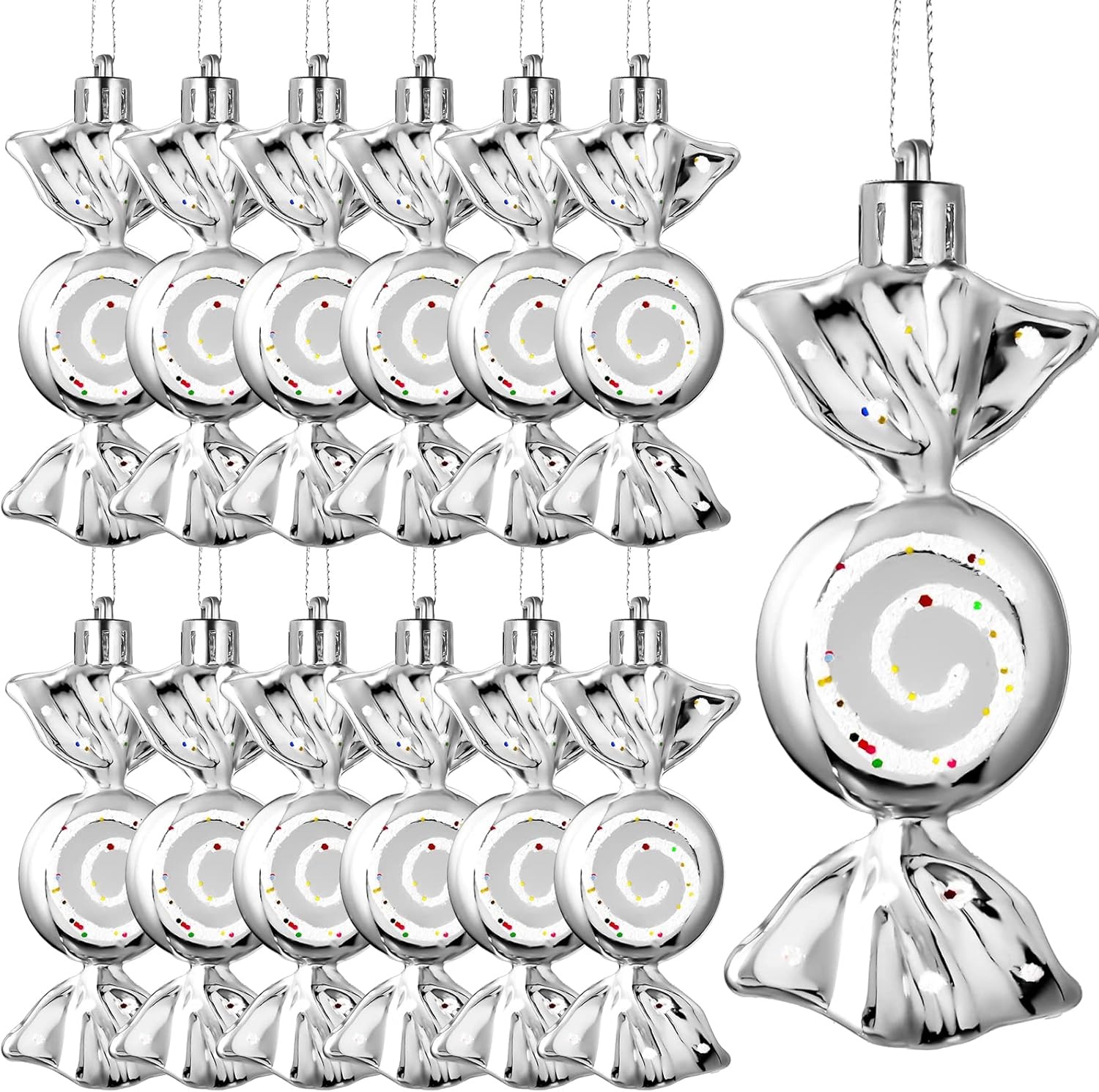 Božični Mini Sladkarije Okraski - Komplet 6, Praznični Okraski za Obešanje Silver