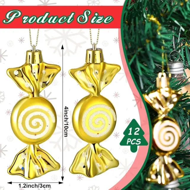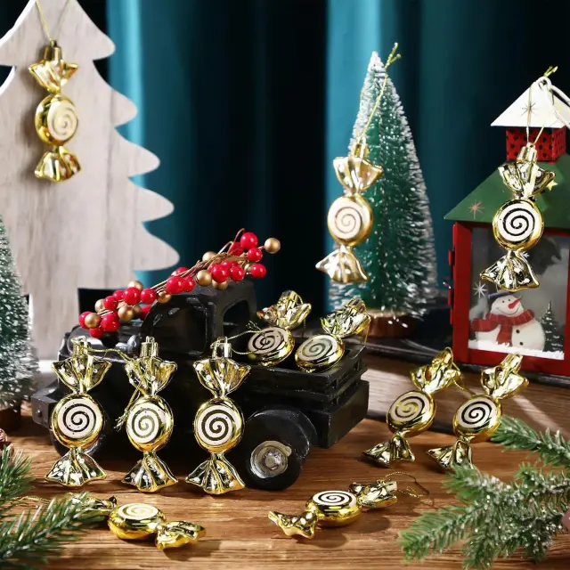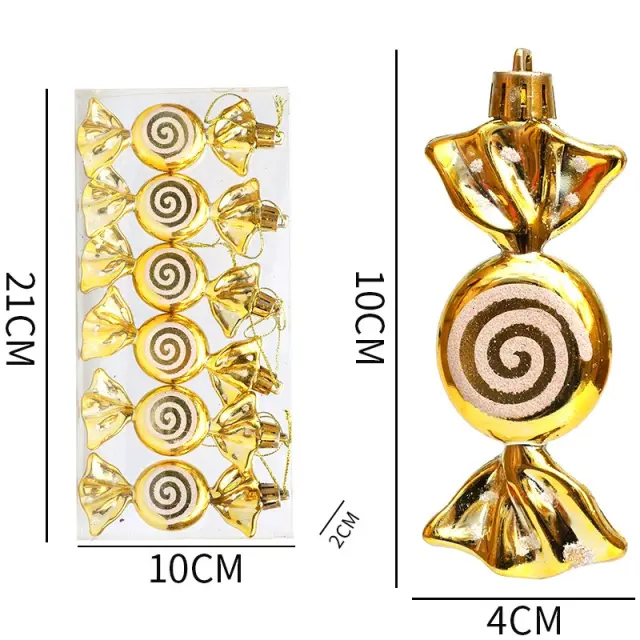 Božični Mini Sladkarije Okraski - Komplet 6, Praznični Okraski za Obešanje Gold