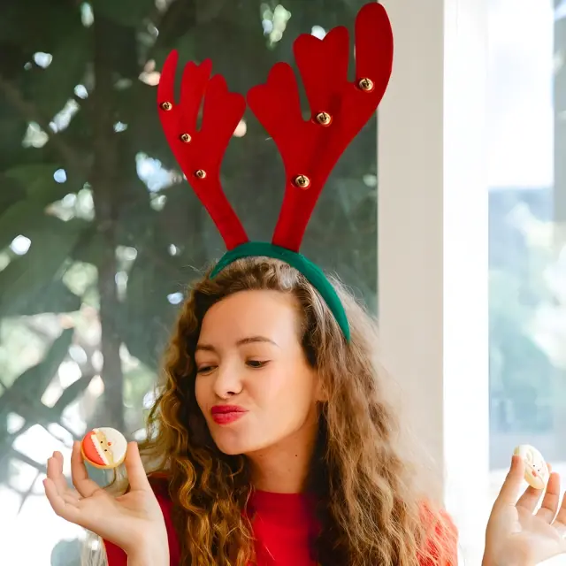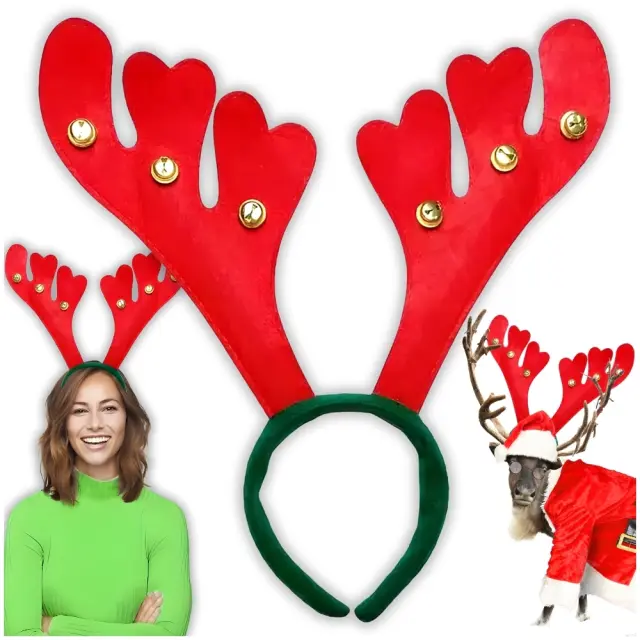 Božični naglavni trak iz rogovja severnih jelenov z zvončki, kostum za fotografiranje, rekvizit