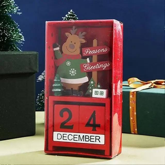 Božični namizni lesen koledar Dekoracija lesenega namiznega koledarja Božička za božično in novoletno darilo