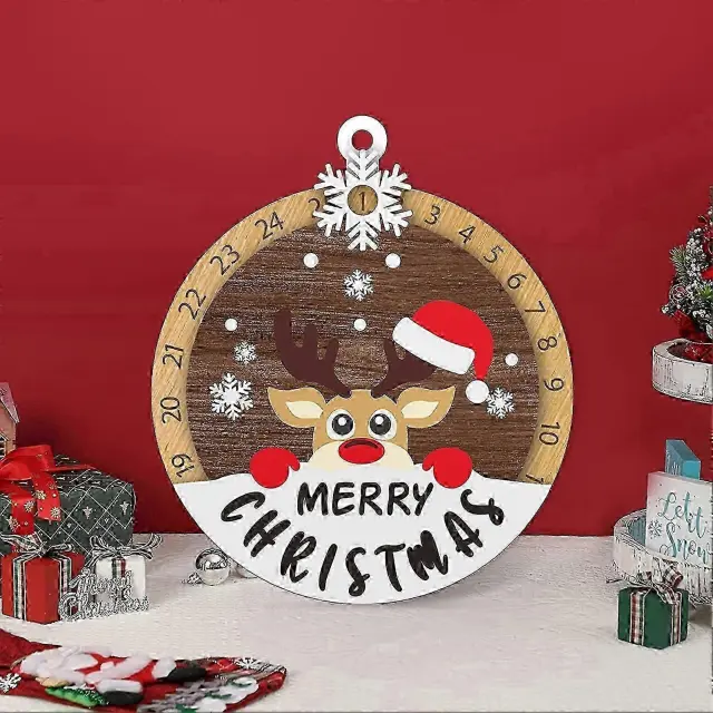 Božični odštevalni adventni koledar z dekorjem iz lesene krave in severnih jelenov za obešanje na steno ali vrata, praznična praznična dekoracij