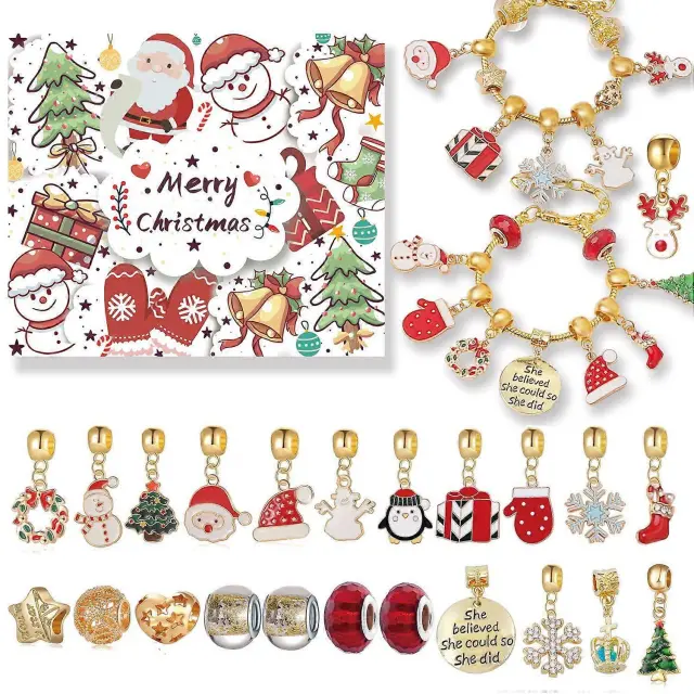 Božični odštevalnik koledar Darilna škatla Set diy Beaded Handwear Adventno božično drevo Zapestnica Darilo Božično adventno