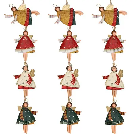Božični okras za božično drevo, 12-delni kovinski obesek z angelom, večbarvni komplet.