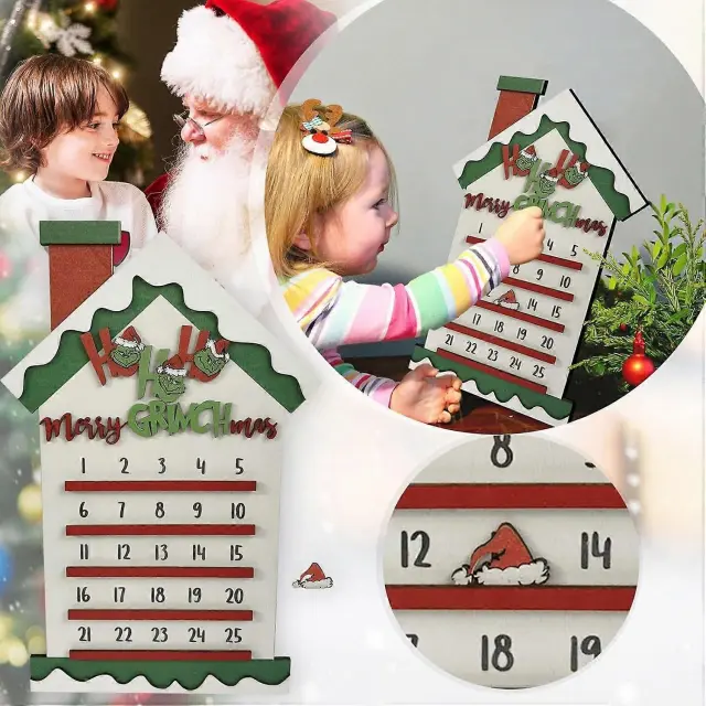 Božični okraski, leseni adventni koledar, 25-dnevno odštevanje do dekoracije doma z božičnimi okraski